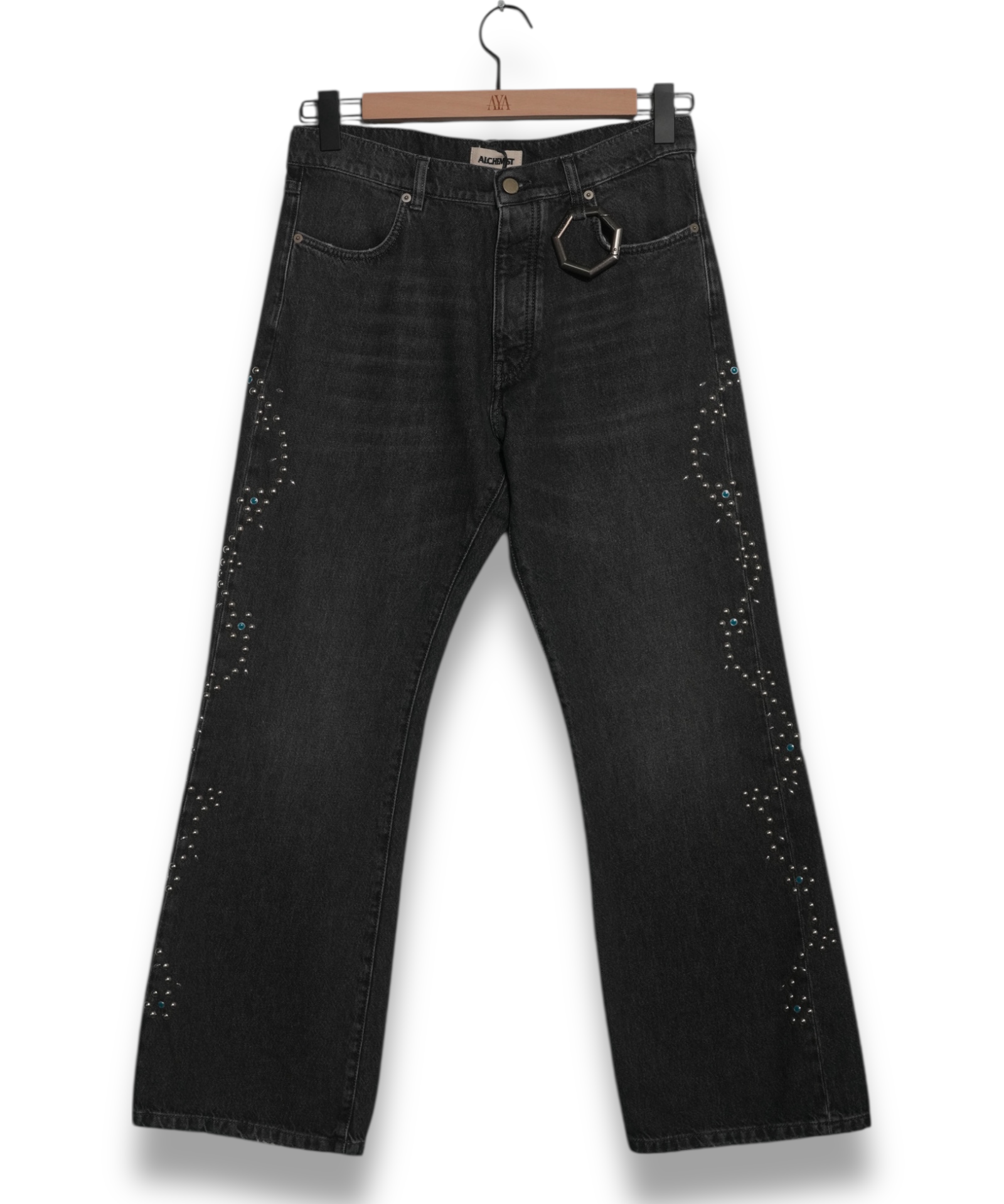Alchemist Studio Jeans w/ Western Stud Stripe - Black Denim