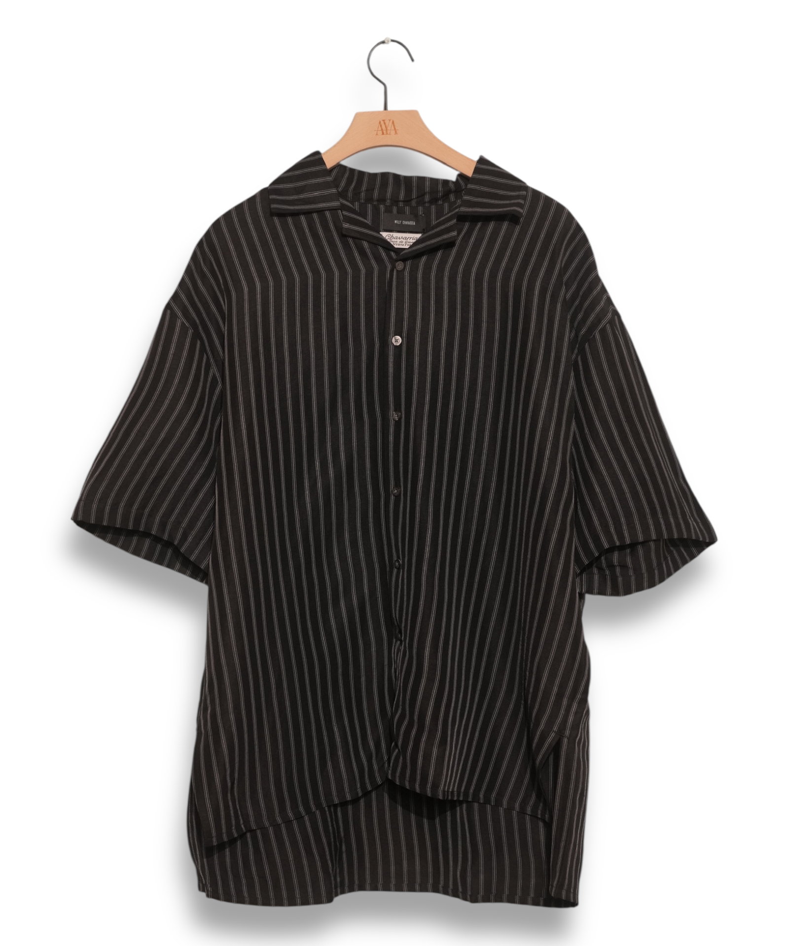 Willy Chavarria Camp Collar SS Shirt - Black/White Stripe