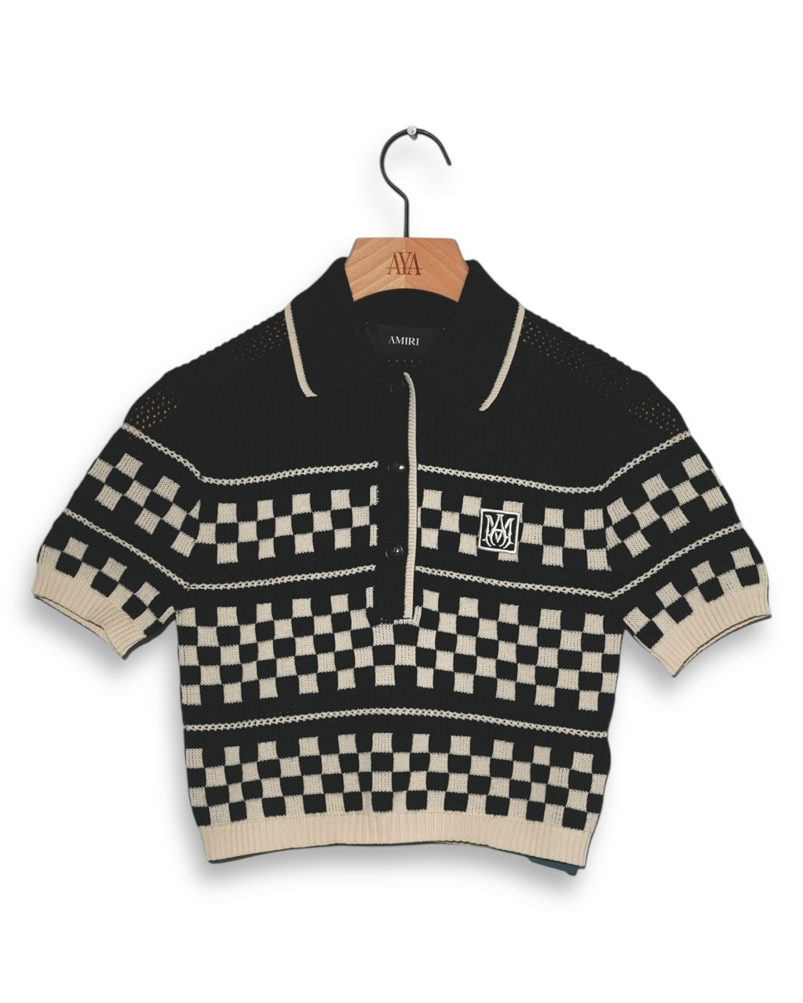 Amiri Women's Checkered Mesh Polo - Black