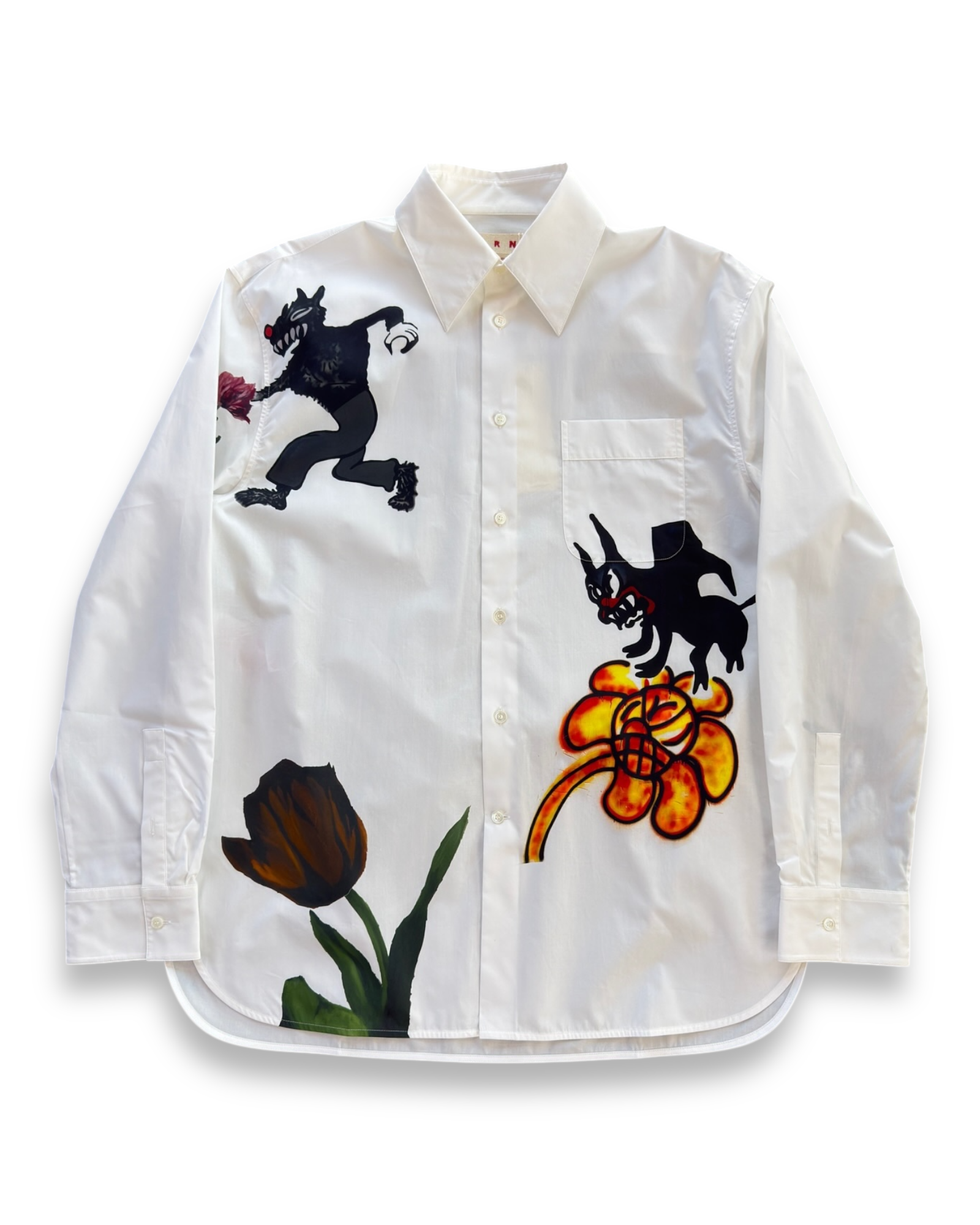 Marni Wolfs & Tulip Poplin Printed Shirt - Lily White